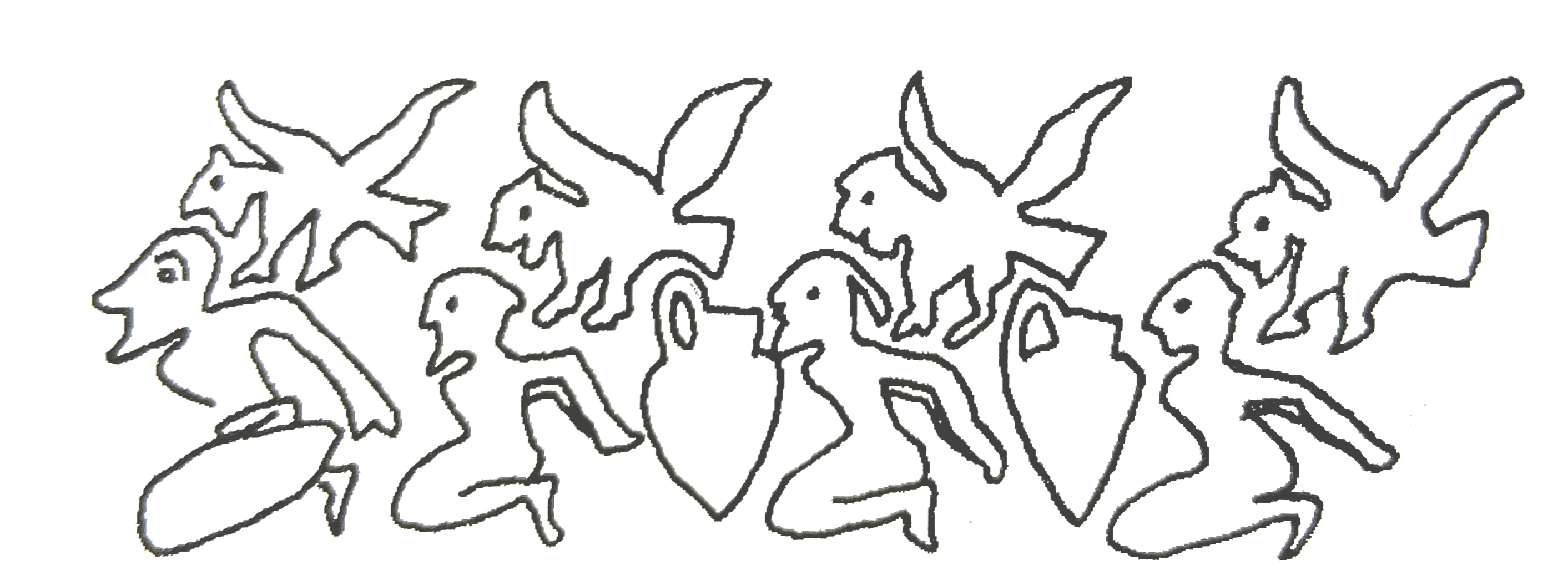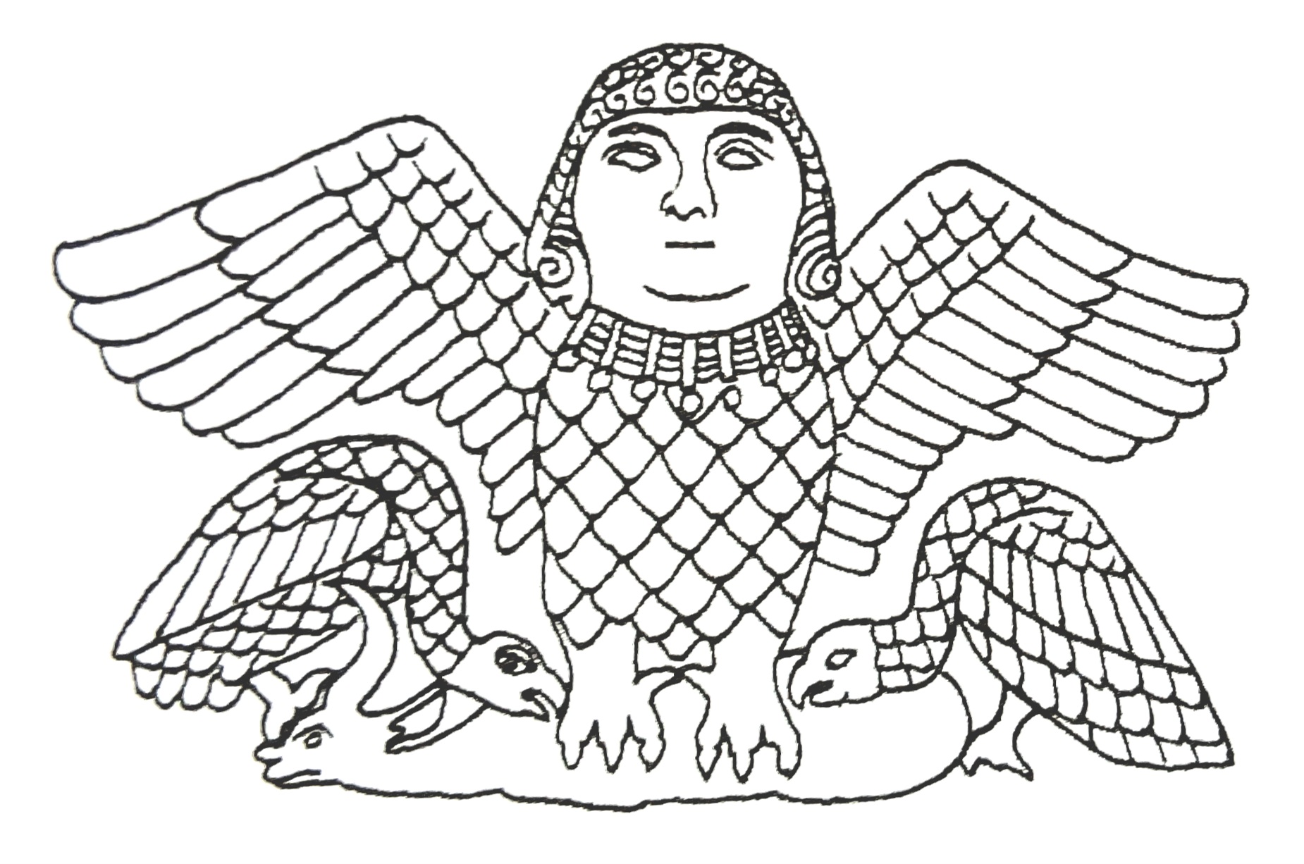 초기 메소포타미아 미술작품에서 이와같은 모티프를 가진 문양을 찾을 수 있습니다.