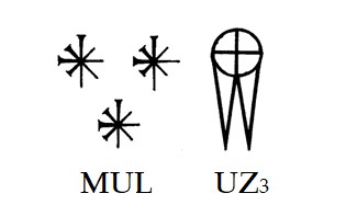 <물아핀(Mul-Apin)>에서 굴라의 옥좌 아래 있는 두 개 별은 에라갈(Erragal)과 닌사르(Ninsar)의 별로 기록하고 있습니다.