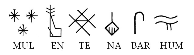 | 수메르어로 야생돼지자리는 '물 엔-테-나-바르-훔(Mul En-te-na-bar-hum)'으로 기록하였습니다. |