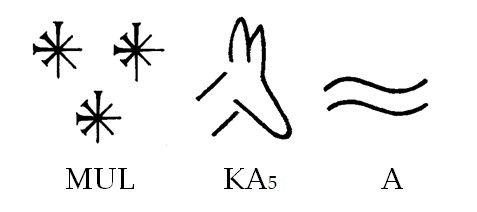 | '카(Ka)' 표기는 여우의 머리를 묘사한 표기입니다. 그런데 이 표기는 짐승을 의미하기보다는 '기만적', '터무니없는', '거짓의', '반항적인' 등 일반적으로 생각하는 여우의 본성을 묘사하는데 사용됩니다. 늑대자리(the Wolf)나 표범자리(the Panther)처럼 사악한 예언으로 점철된 별자리처럼 여우자리 역시 대개 나쁜 기운을 가진 행성인 화성의 별칭으로 사용되었습니다. 그래서 '카(Ka)' 표기는 화성의 또다른 별칭인 '거짓된 별'을 표기하는데 사용되는 철자이기도 합니다. '아(A)' 표기는 문법 표기로서 '카(Ka)'의 의미를 명사형으로 변화시키는 역할을 합니다. 따라서 이 표기는 '기만적인 기운이 가득한 별자리'로 이해할 수 있습니다. |