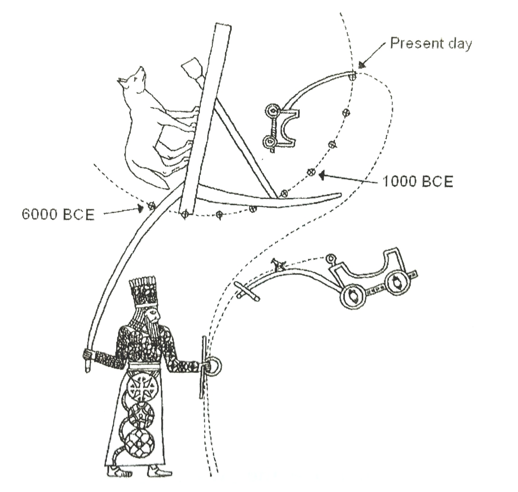 | 그림 3 북반구의 여러 별자리를 묶어낸 밧줄, 페다메노프 무덤 출토(기원전 8C 경). |